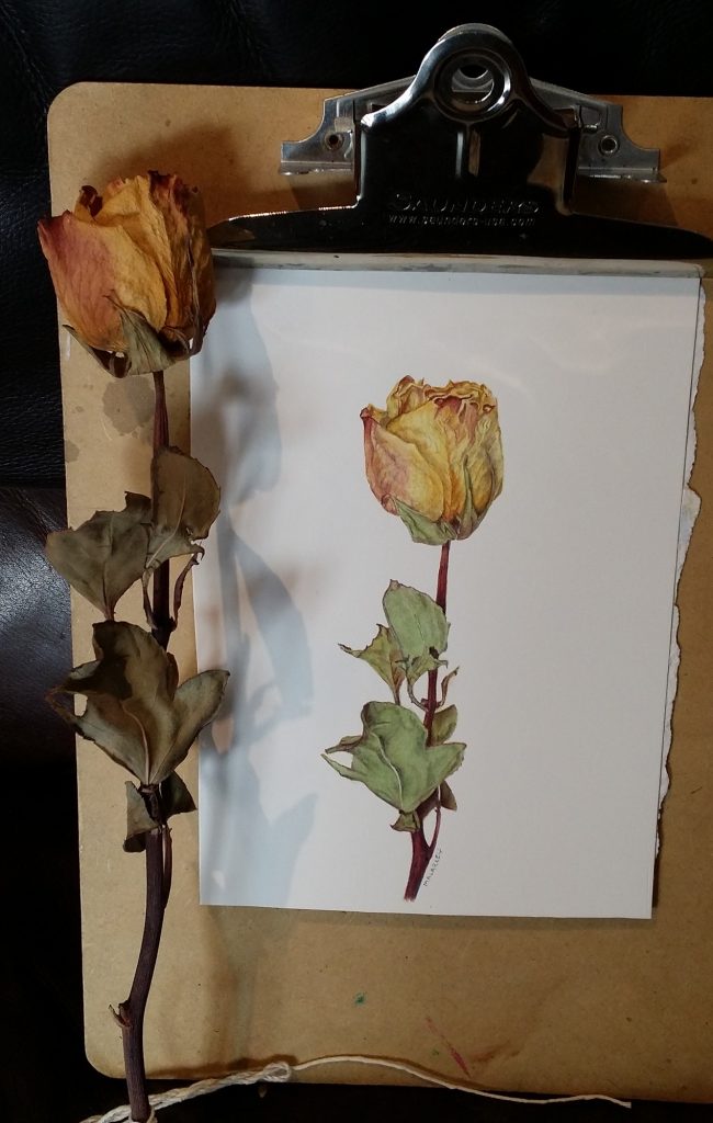 Dried Rose. Watercolor, 4x7. Brandi Malarkey, artist. ItsAllMalarkey.com