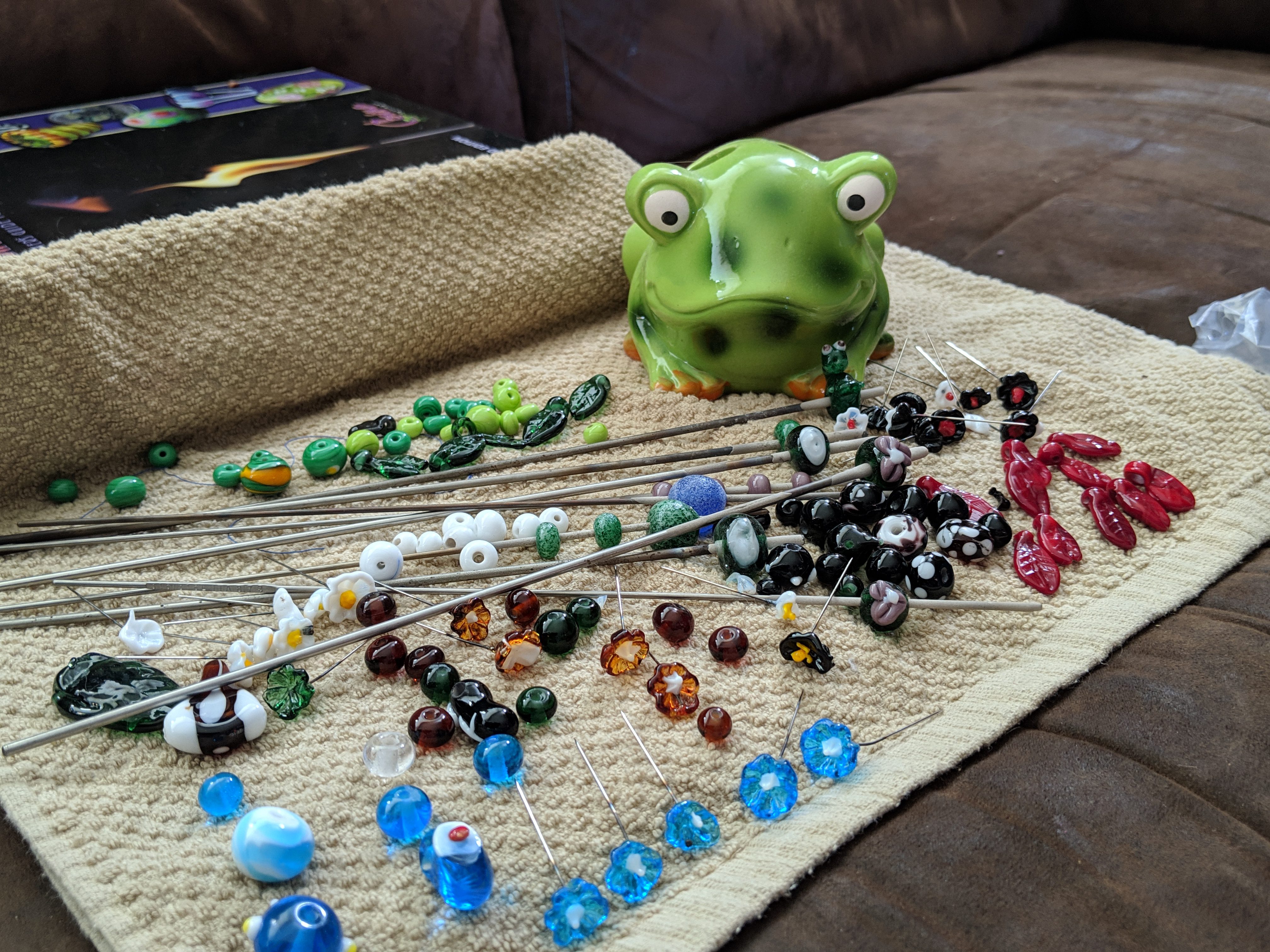 Gallery 4 has a gift shop, and while my paintings do tend to be on the smaller end of the spectrum, I don’t have a lot of small things that are of interest, painting-wise. So I decided to take up lampwork bead making. The fact that I haven’t touched glass in nearly 15 years and really don’t have time to add in a completely “new” art having no bearing on this decision whatever.