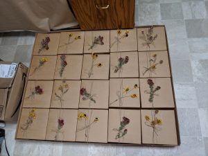 I did 46 total paintings, each one unique and individual. All pieces are to scale (the painting is the same size as the specimen used), and no more than three of any subject was used. Each is roughly 2″x2″-ish in size, on a 5″x5″ ground. Individually, some came out better than others. Together, I am so impressed with myself I can’t even say. Just think what it will be like when I actually know what I am doing?