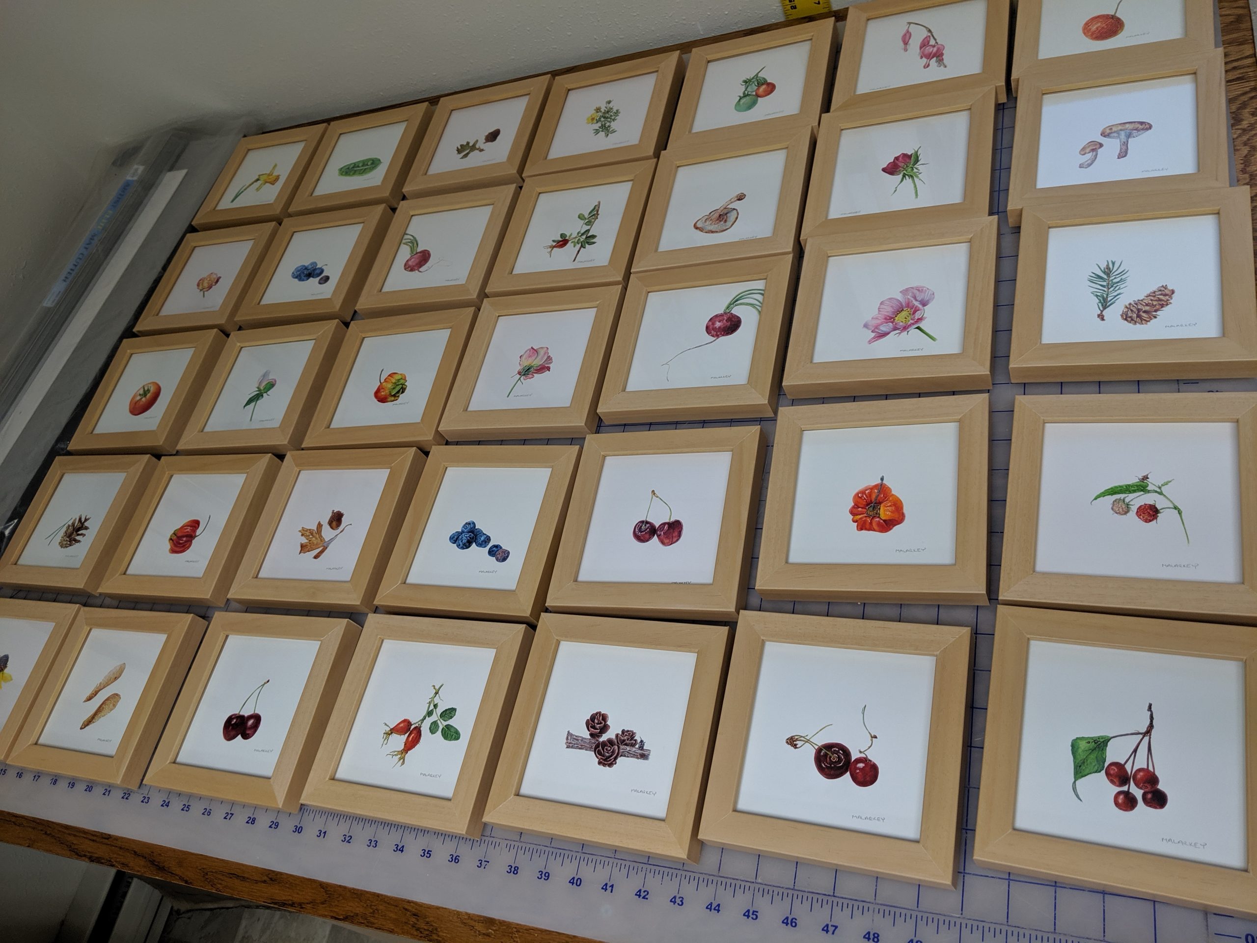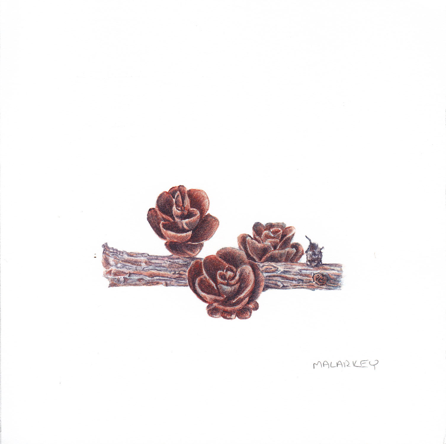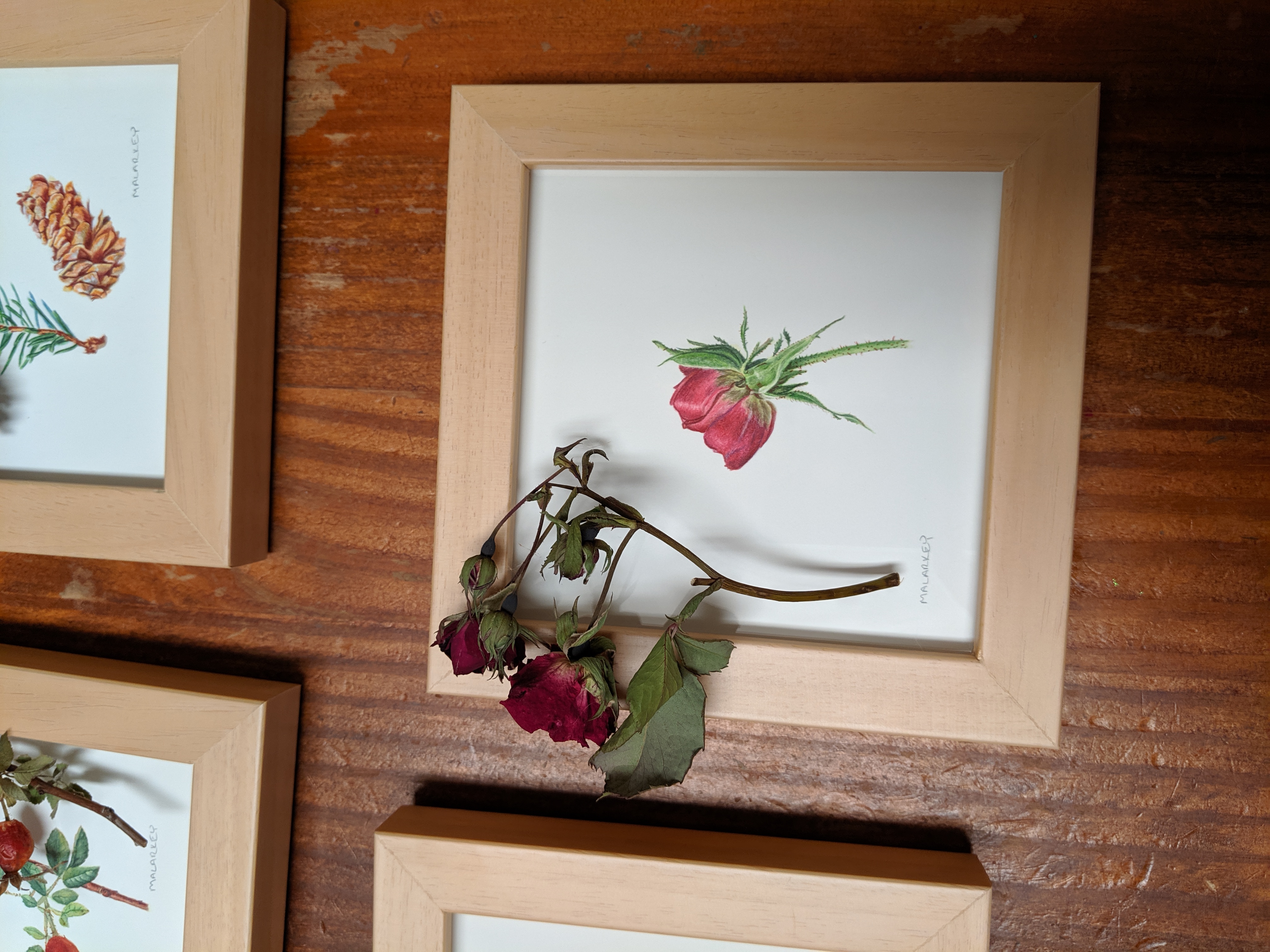 Most of the specimens have long since rotted away. However, these few dried well and I offer them as a visual of how close to the original specimen size the paintings are: