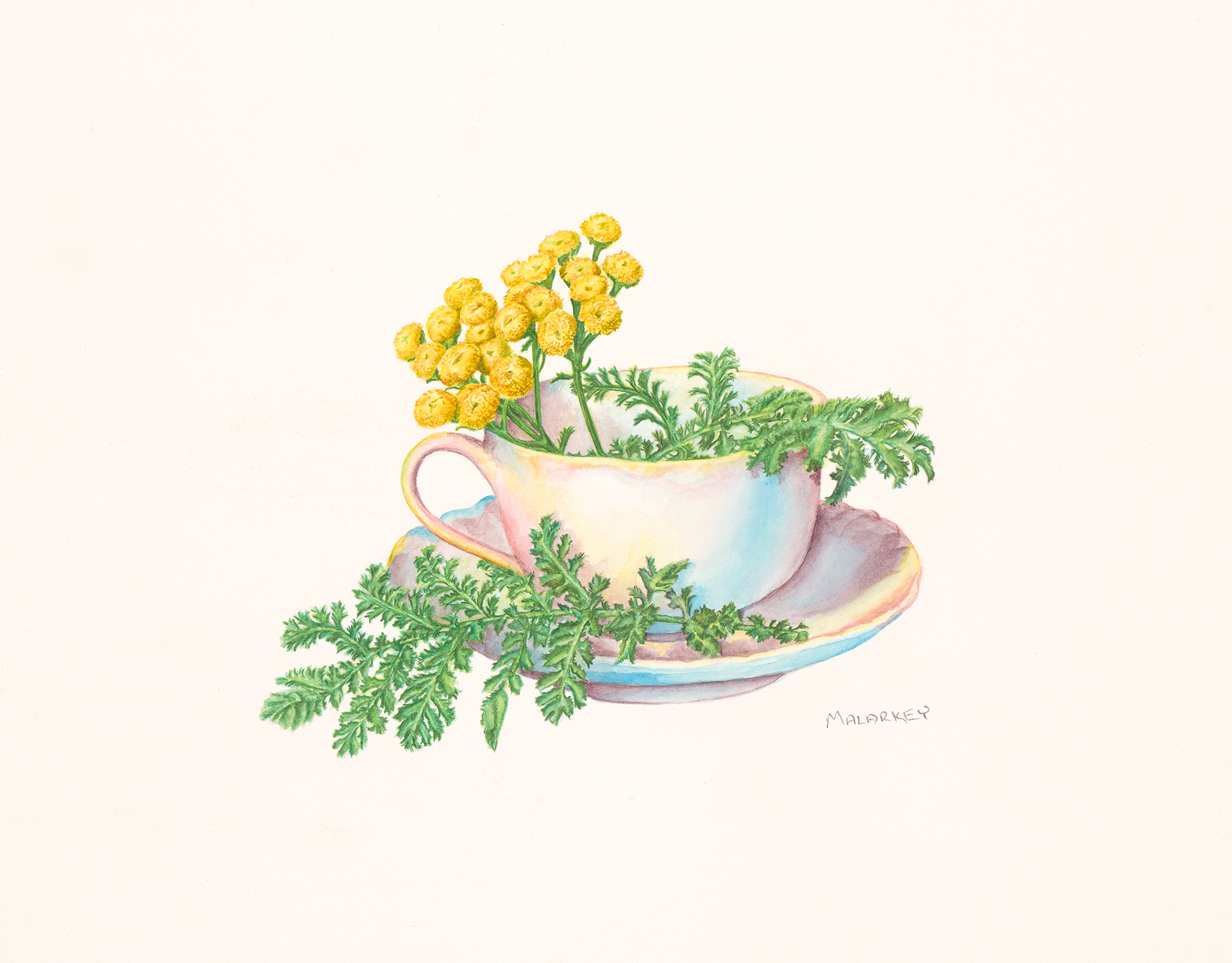 How to appropriately celebrate that? Why, with a cup of tea, of course. In the Victorian Language of Flowers , gifting the flower Tansy, was “to resist, or to declare war”. In the current political climate, is there any better pairing for a botanical artist?