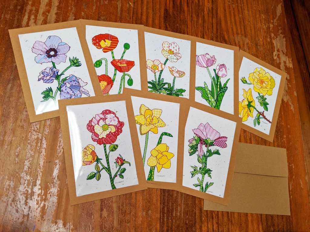 My newest line of greeting cards has been printed and is now stocked at Gallery 4. I also reworked one I had done for a friend to fit in with the new line: